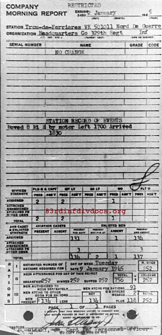 Morning report HQCO/329 for January 2, 1945