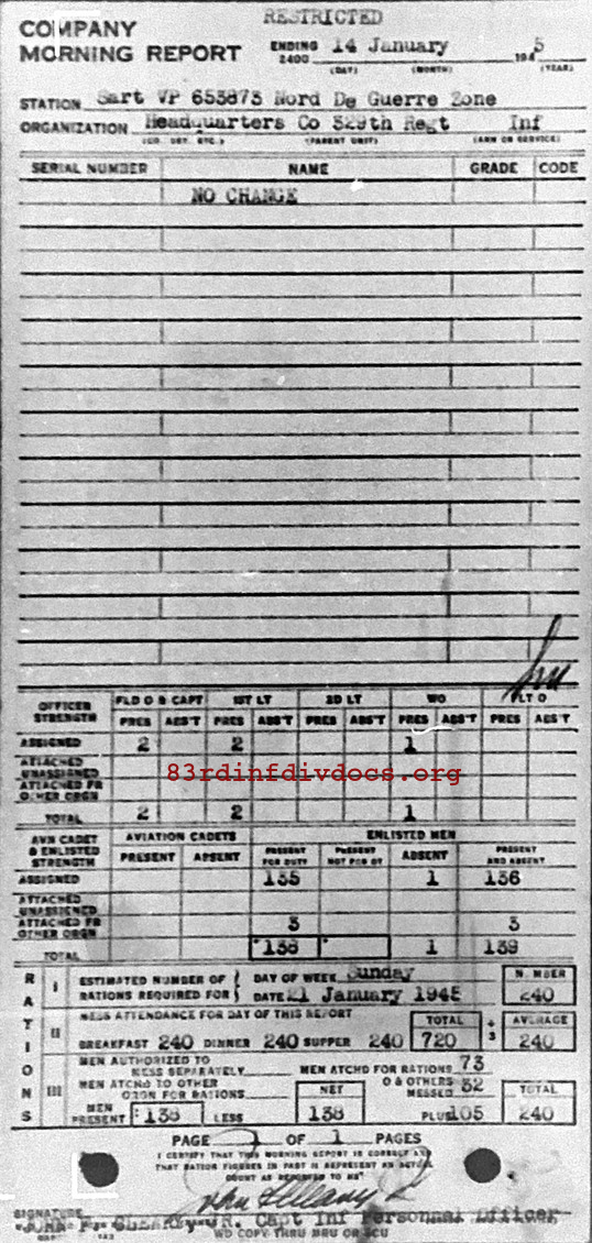 Morning report HQCO/329 for January 14, 1945