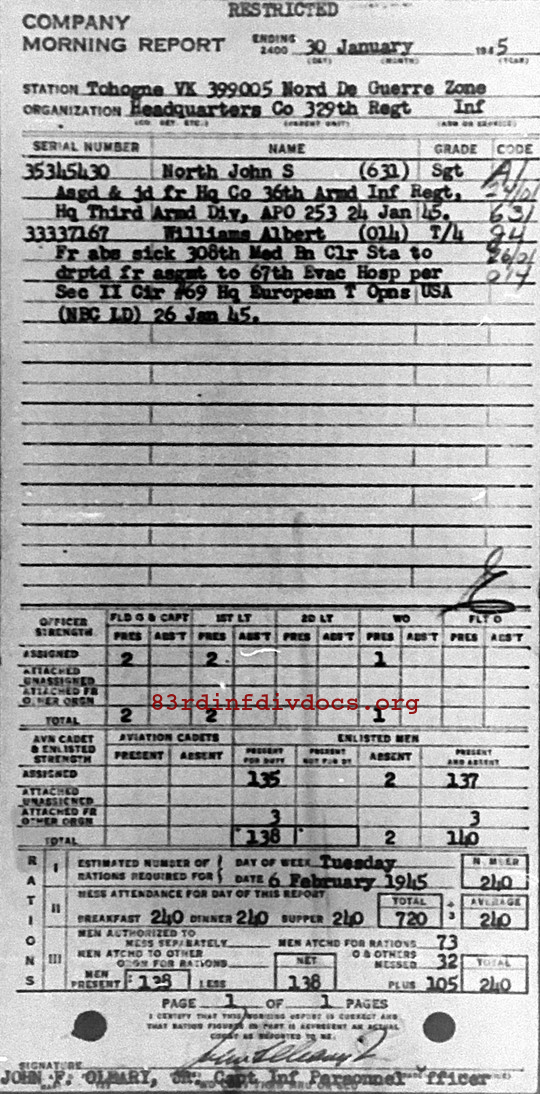 Morning report HQCO/329 for January 30, 1945