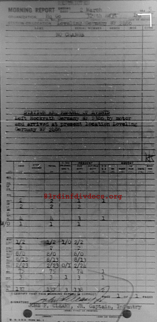 Morning report HQCO/329 for March 2, 1945