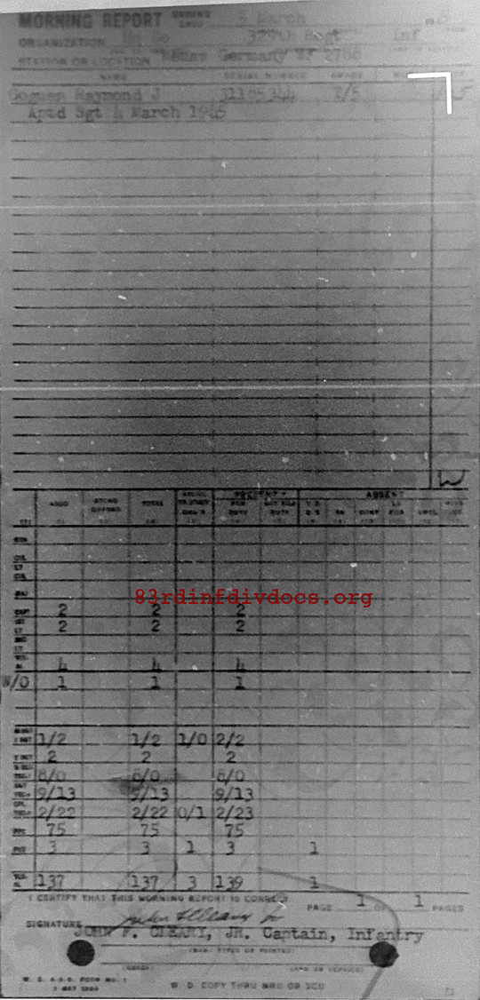 Morning report HQCO/329 for March 5, 1945