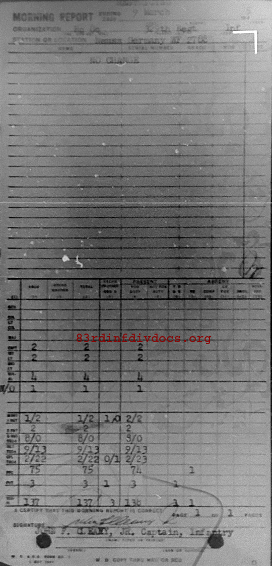 Morning report HQCO/329 for March 9, 1945