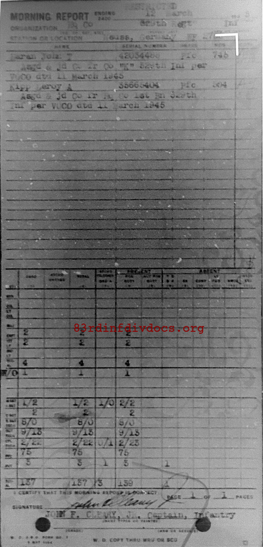 Morning report HQCO/329 for March 12, 1945