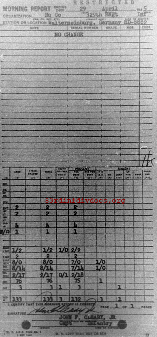 Morning report HQCO/329 for April 29, 1945