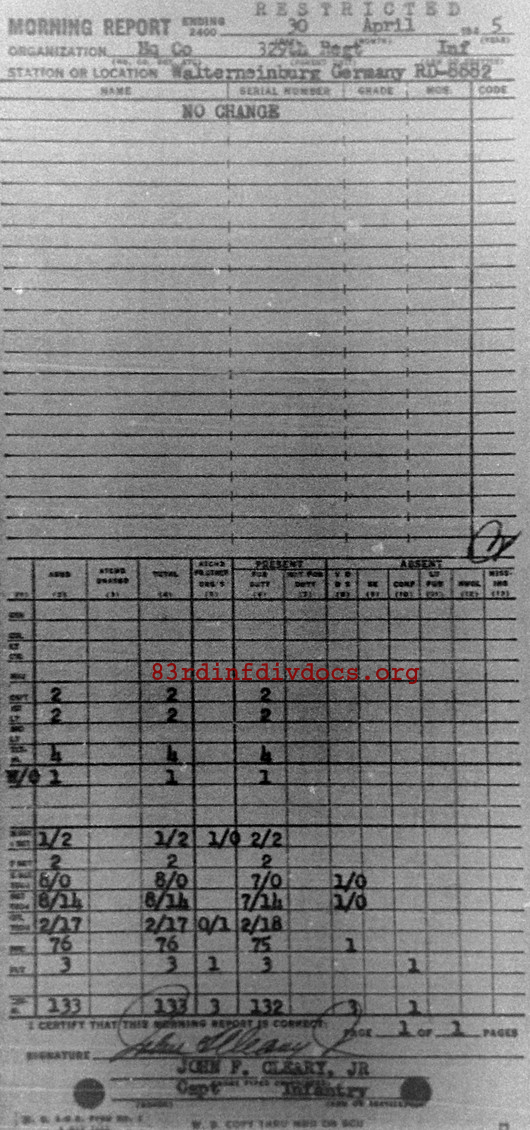 Morning report HQCO/329 for April 30, 1945