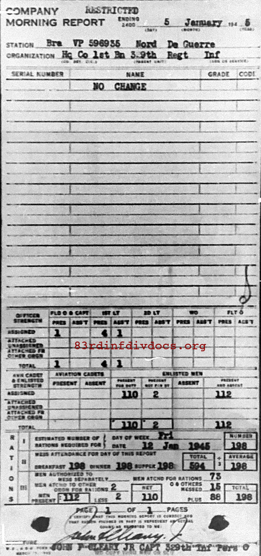 Morning report HQCO1BN/329 for January 5, 1945