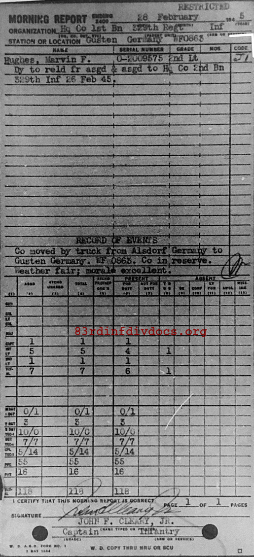 Co moved by truck from Alsdorf, Germany to Gusten, Germany WF0863. Co in reserve. Weather fair. Morale excellent.