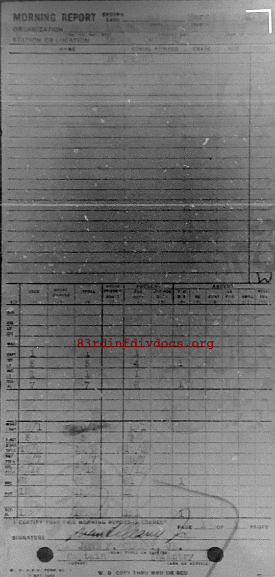 Morning report HQCO1BN/329 for March 11, 1945