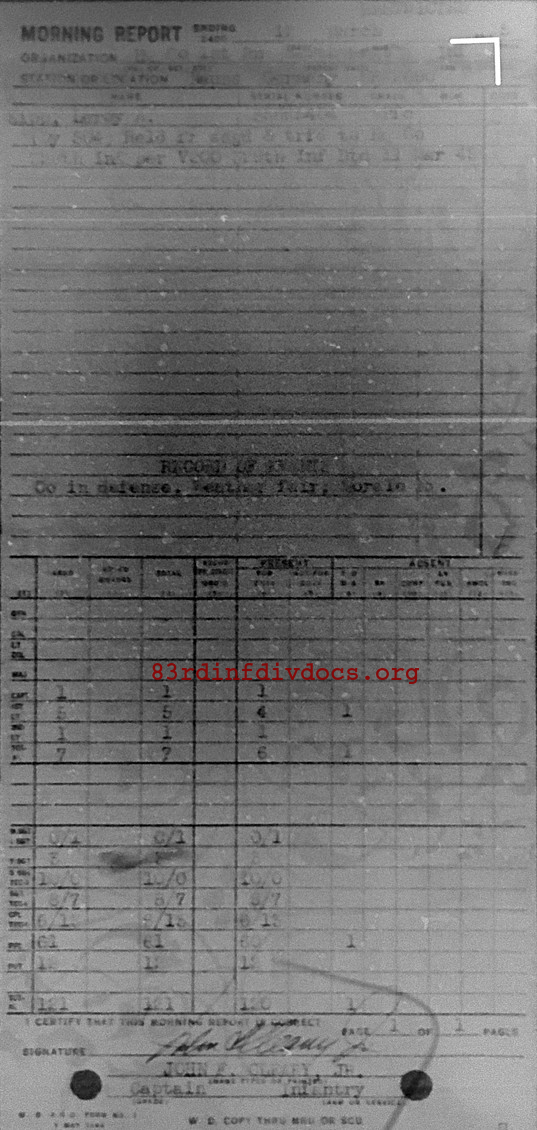 Morning report HQCO1BN/329 for March 12, 1945