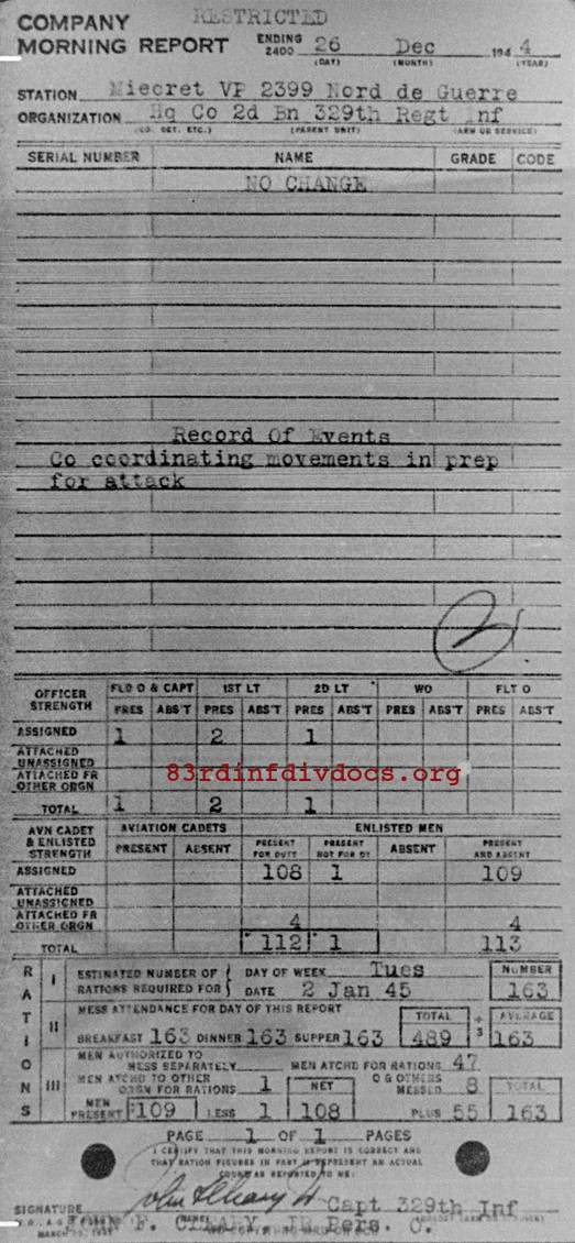 Morning report HQCO2BN/329 for December 26, 1944