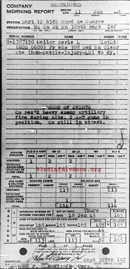 Morning report HQCO2BN/329 for January 11, 1945