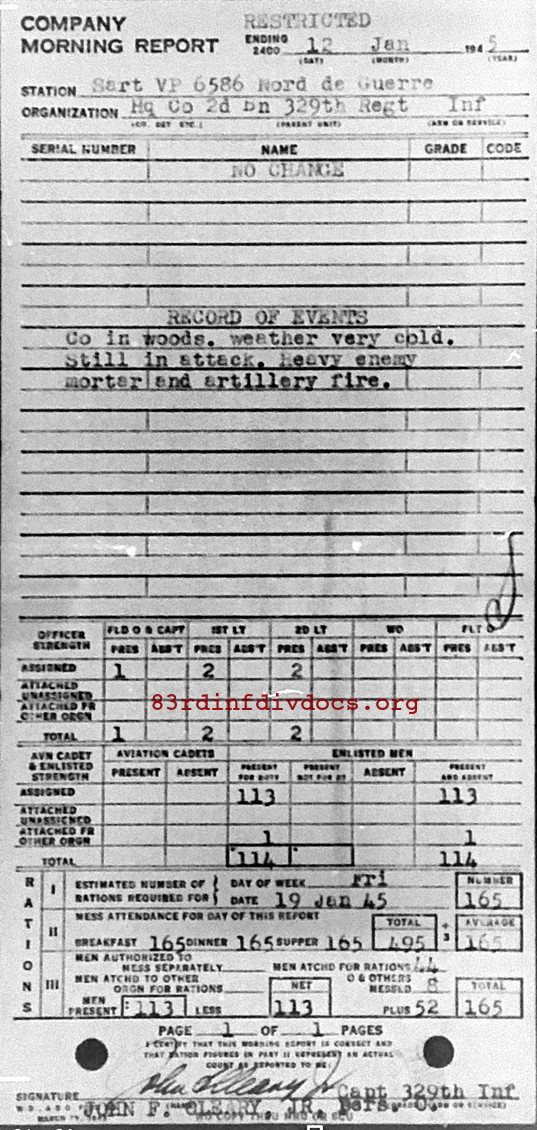 Co in woods. Weather very cold. Still in attack. Heavy enemy mortar and artillery fire.