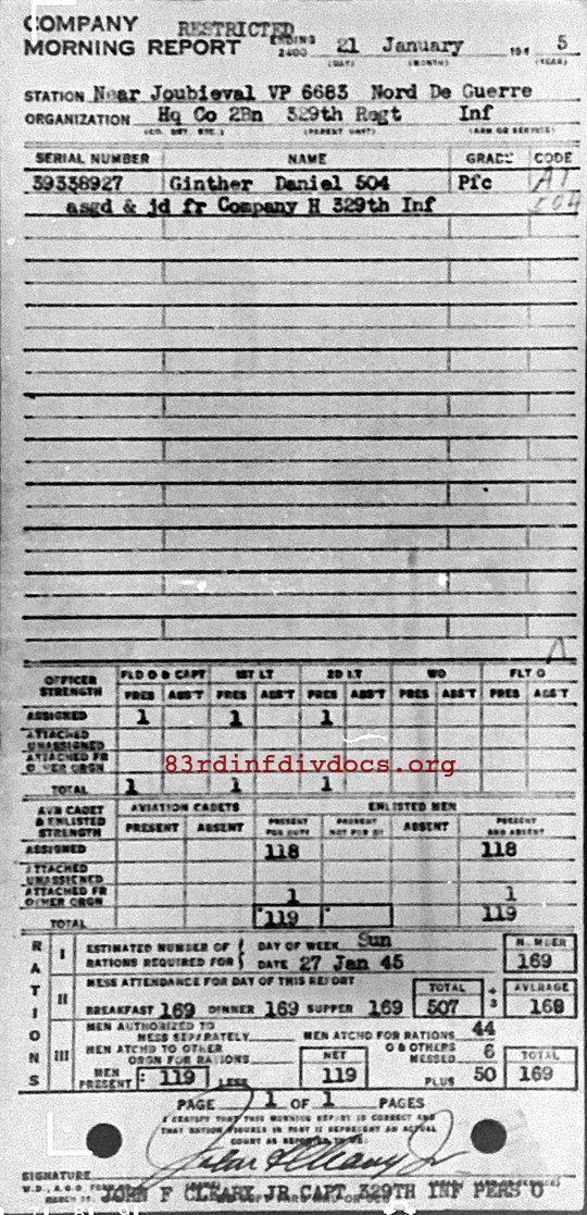 Morning report HQCO2BN/329 for January 21, 1945