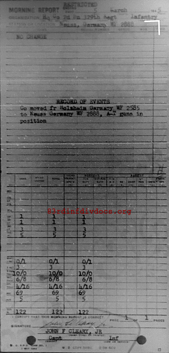 Co moved fr Holzheim Germany WF2585 to Neuss Germany WF2888. A-T guns in position