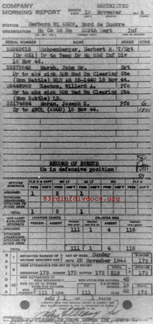 Morning report HQCO3BN/329 for November 19, 1944