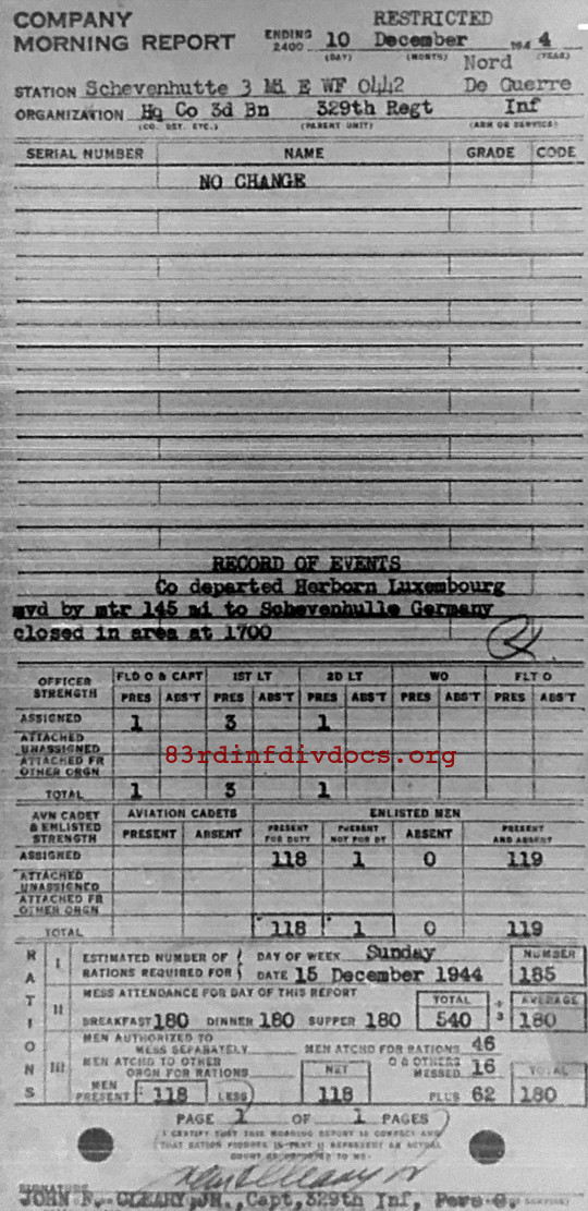 Morning report HQCO3BN/329 for December 10, 1944