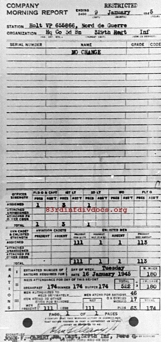 Morning report HQCO3BN/329 for January 9, 1945