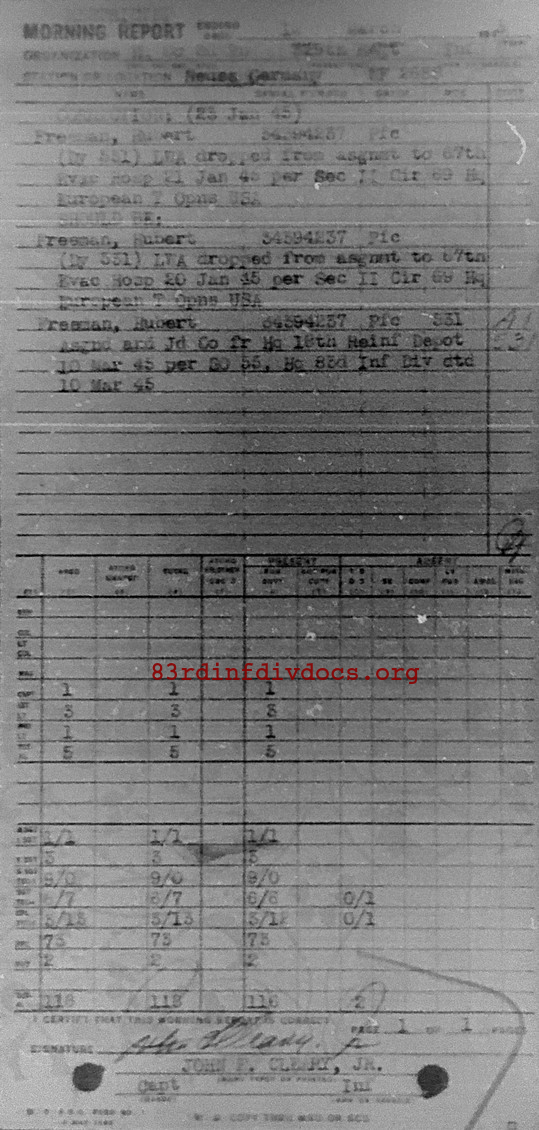 Morning report HQCO3BN/329 for March 12, 1945