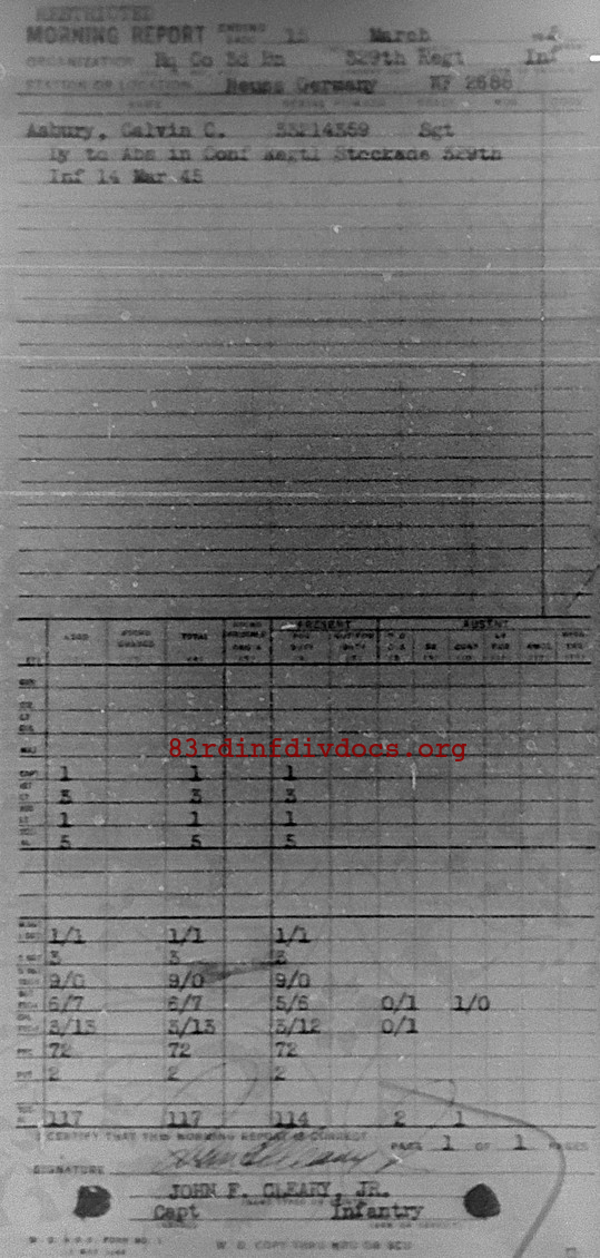 Morning report HQCO3BN/329 for March 15, 1945
