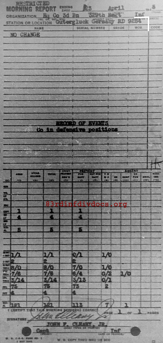 Morning report HQCO3BN/329 for April 23, 1945