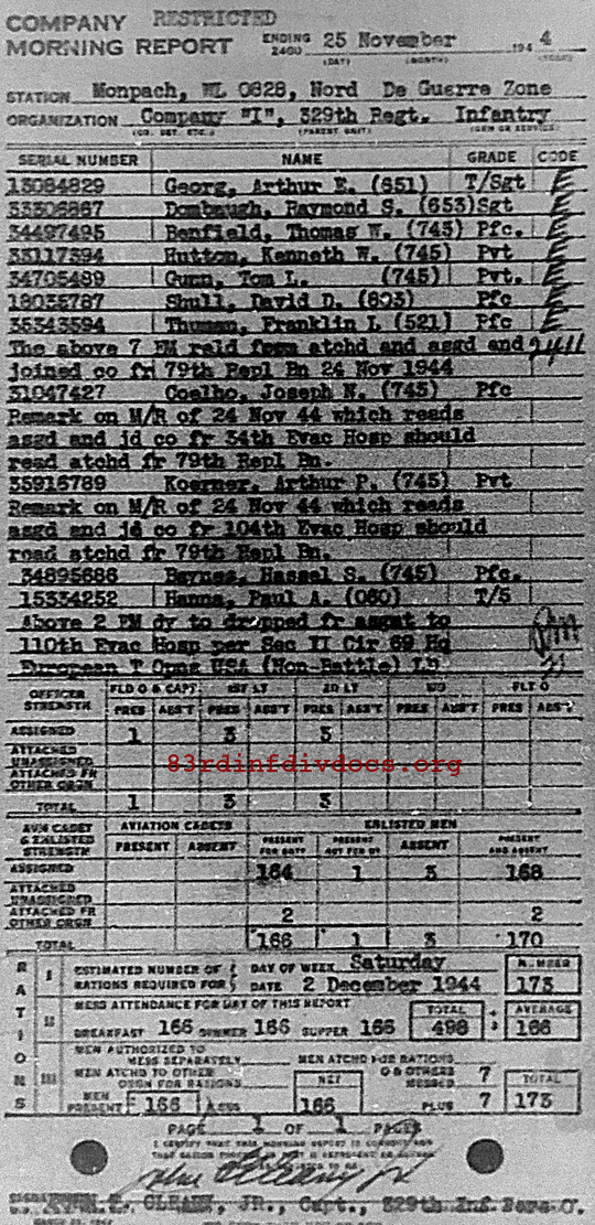 Morning report I/329 for November 25, 1944