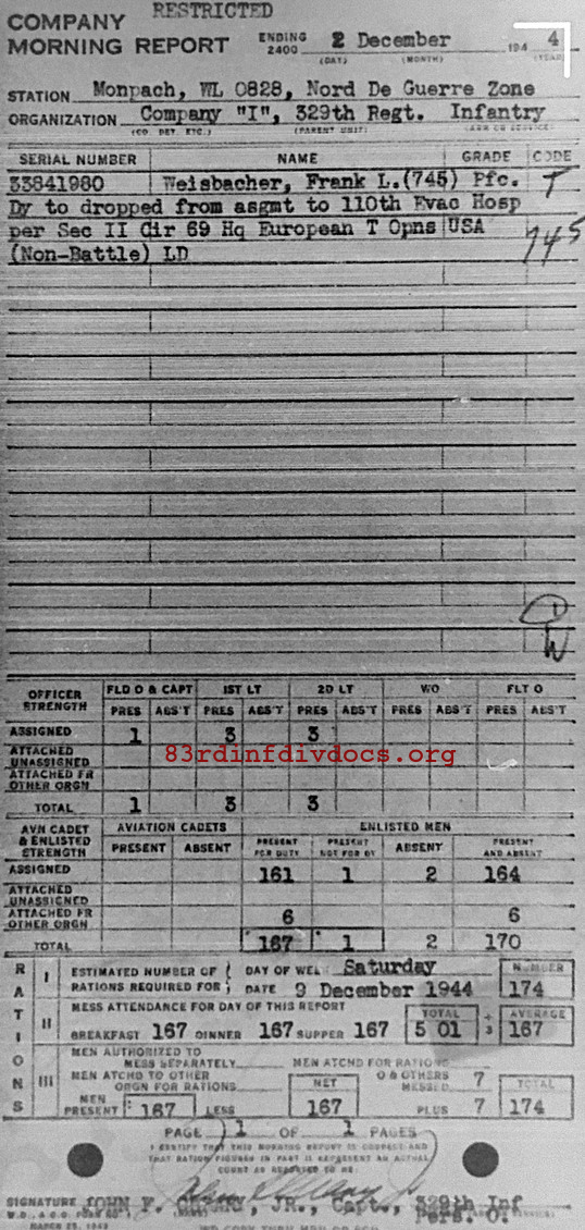 Morning report I/329 for December 2, 1944