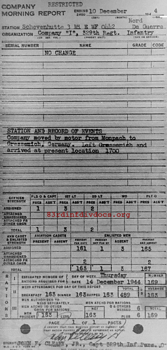 Company moved by motor fr Monpach to Gressenich, Germany. Left Gressenich and arrived at present location 1700.