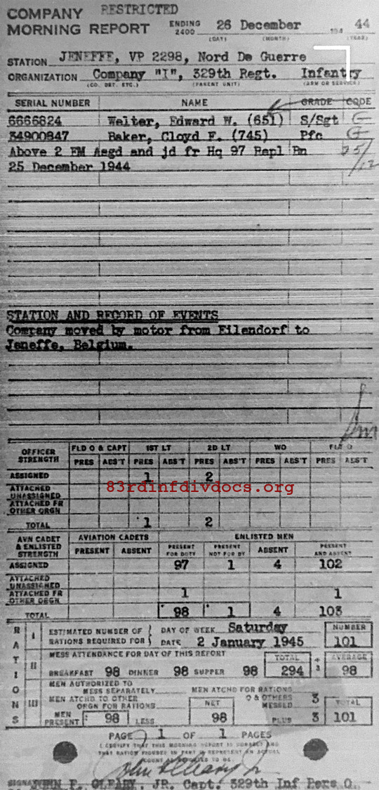 Morning report I/329 for December 26, 1944