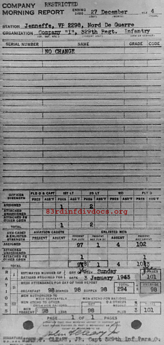 Morning report I/329 for December 27, 1944