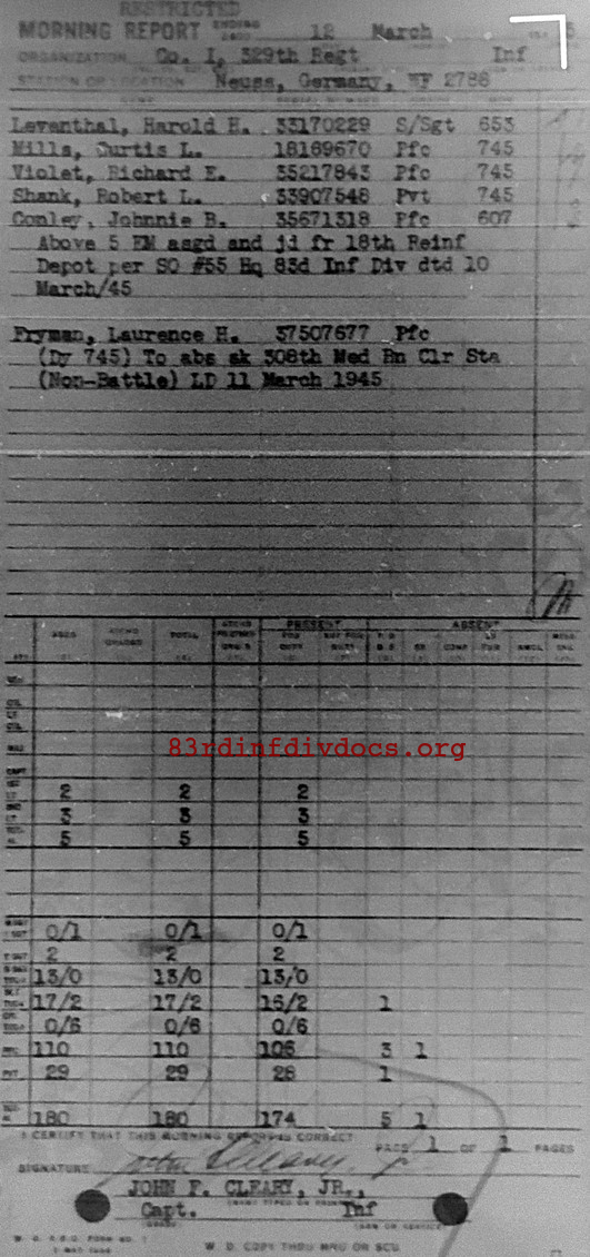 Morning report I/329 for March 12, 1945