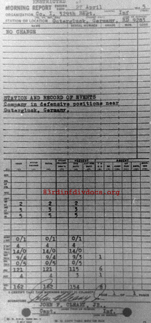 Morning report I/329 for April 25, 1945