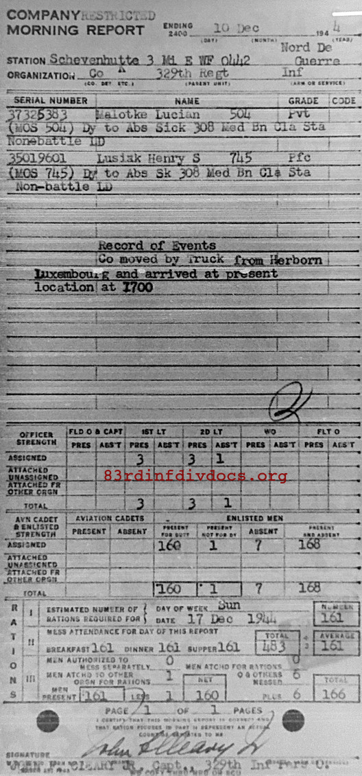 Co moved by truck from Herborn Luxembourg and arrived at present location at 1700.