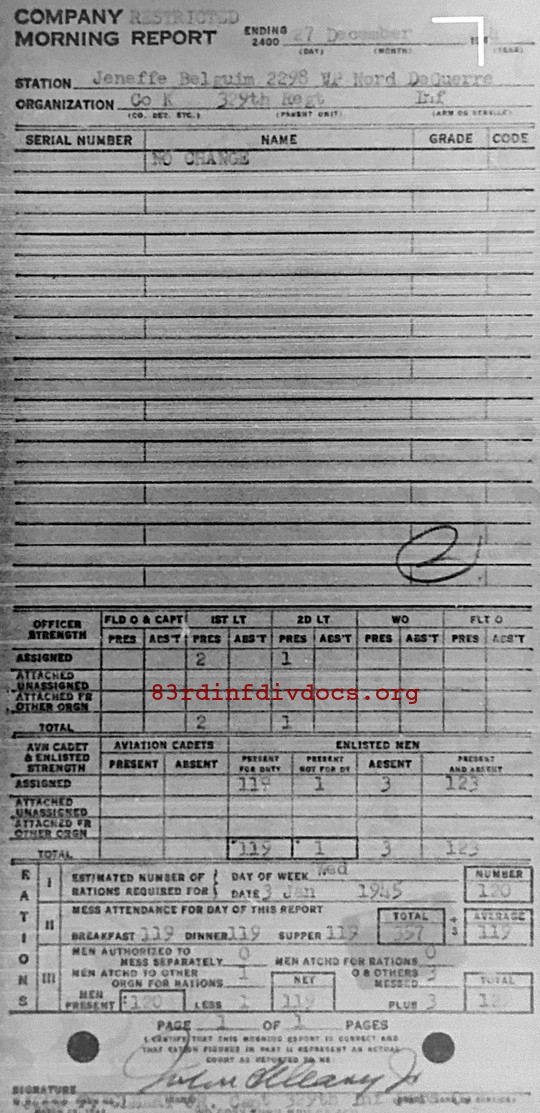 Morning report K/329 for December 27, 1944