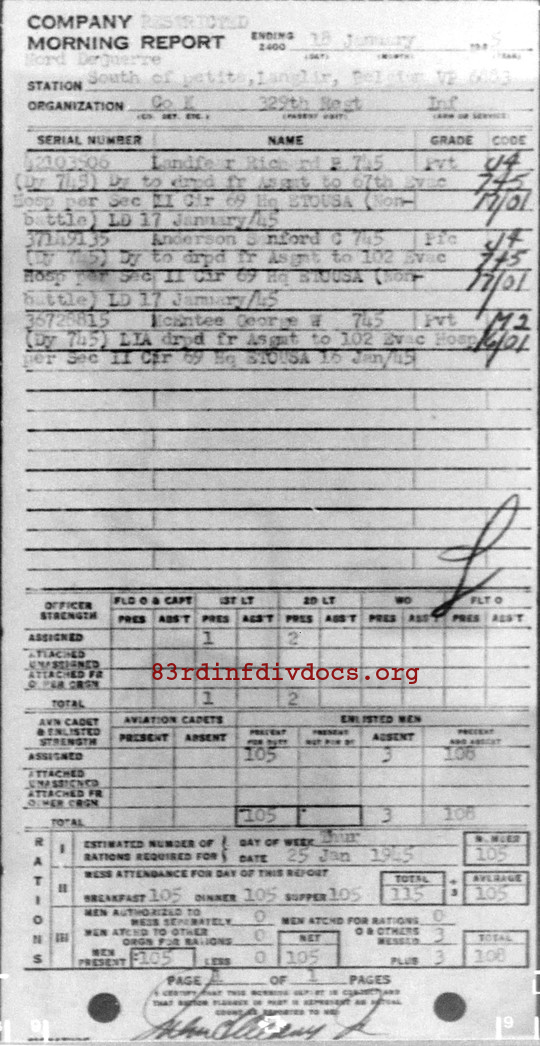 Morning report K/329 for January 18, 1945