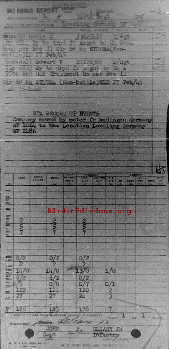 Morning report K/329 for March 1, 1945