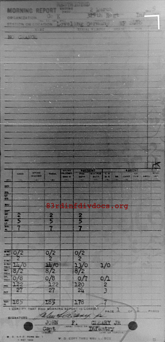 Morning report K/329 for March 2, 1945