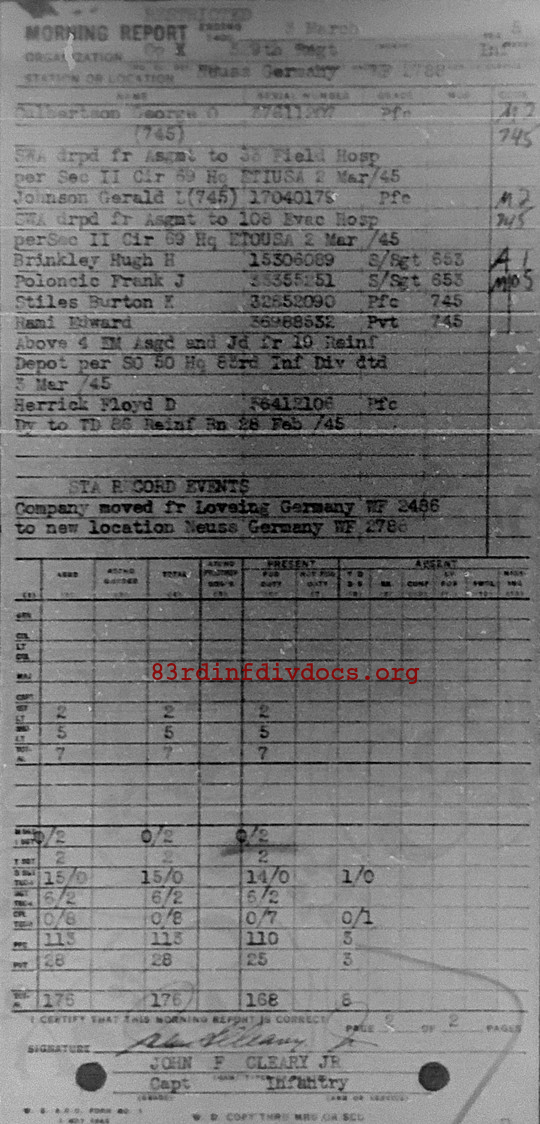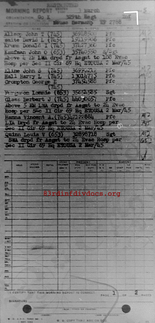 Morning report K/329 for March 3, 1945