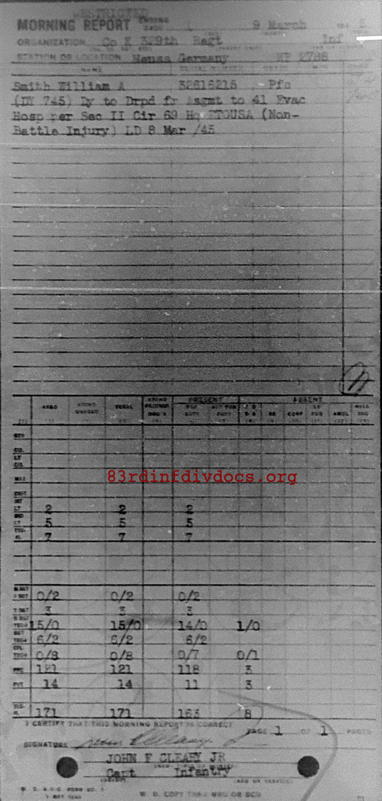 Morning report K/329 for March 9, 1945