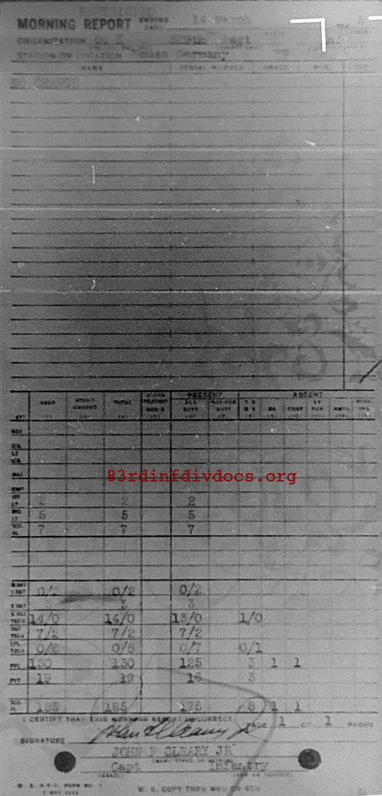 Morning report K/329 for March 14, 1945