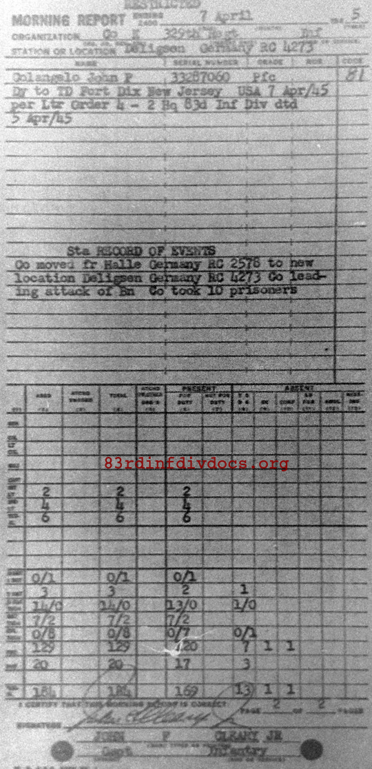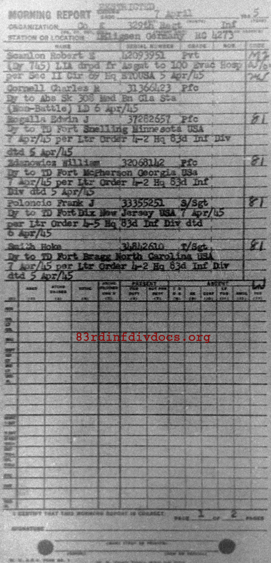 Morning report K/329 for April 7, 1945