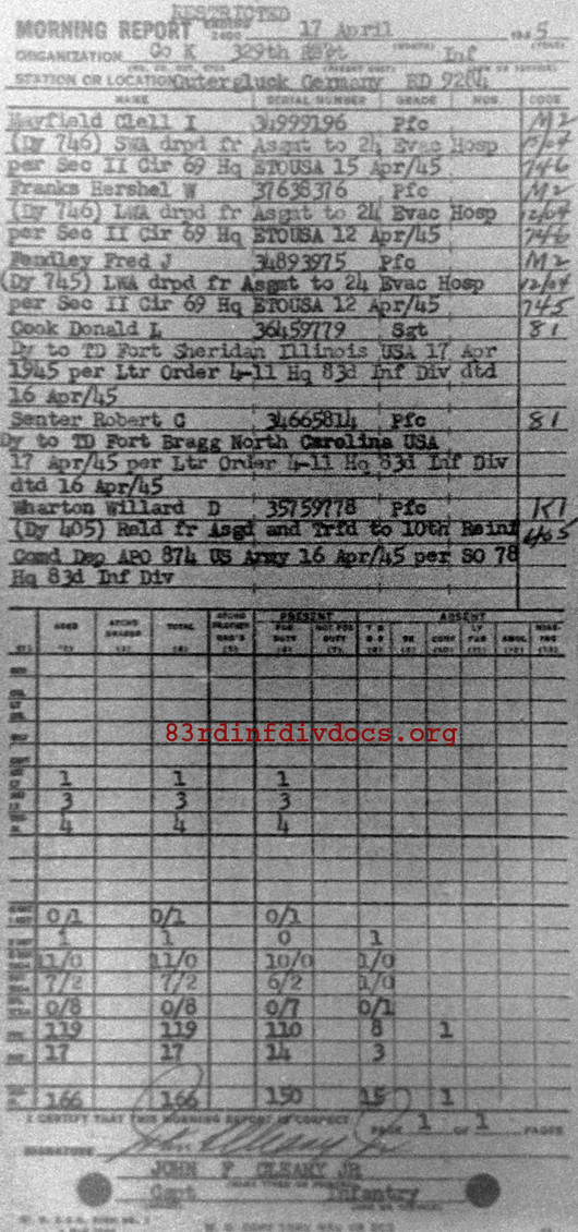 Morning report K/329 for April 17, 1945