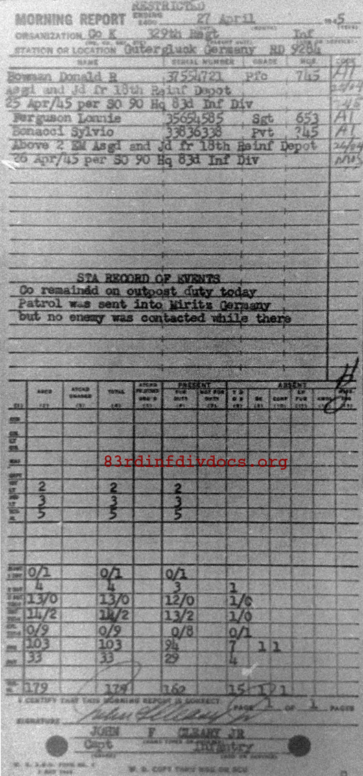 Morning report K/329 for April 27, 1945