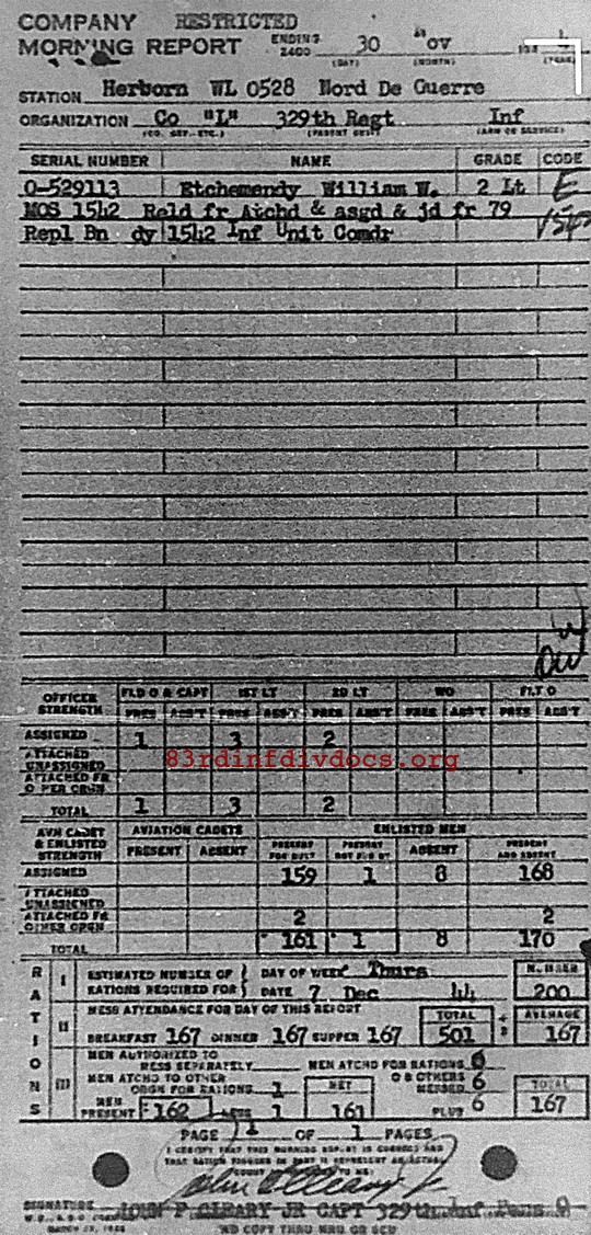 Morning report L/329 for November 30, 1944