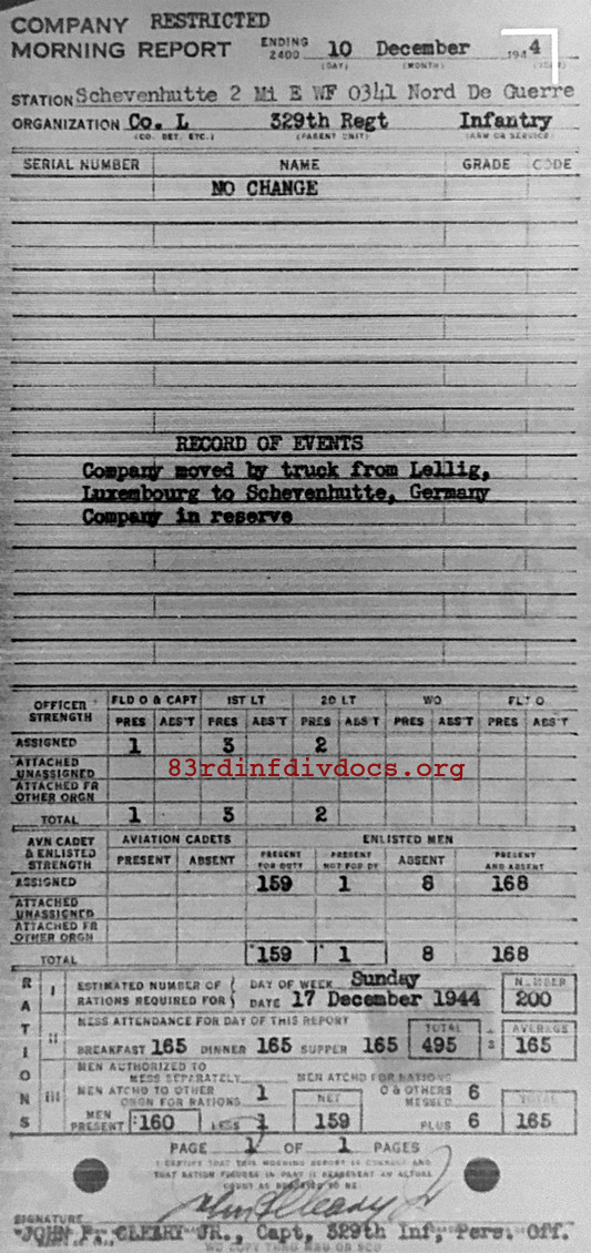 Morning report L/329 for December 10, 1944