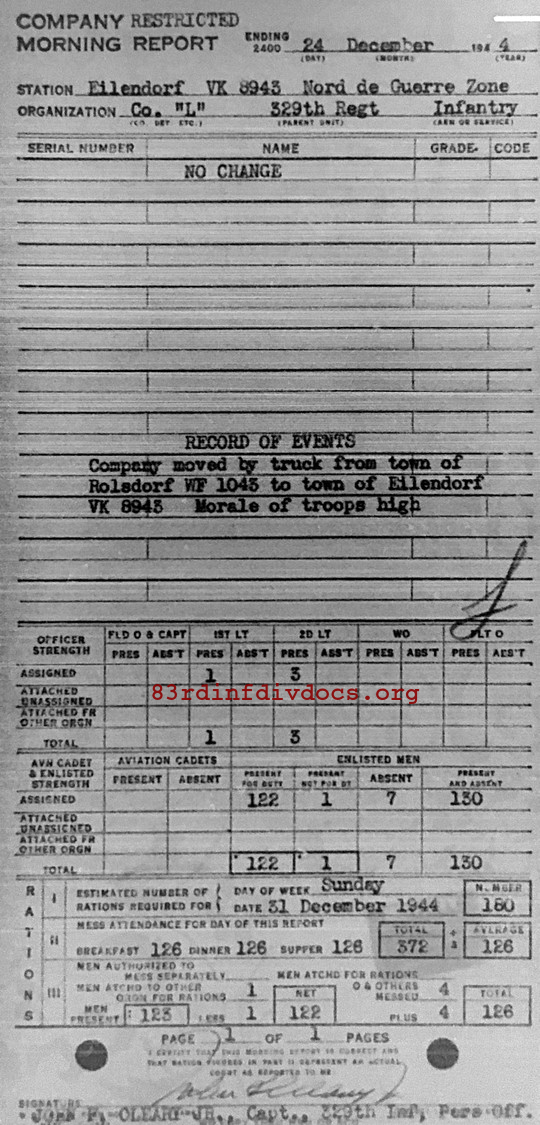 Morning report L/329 for December 24, 1944