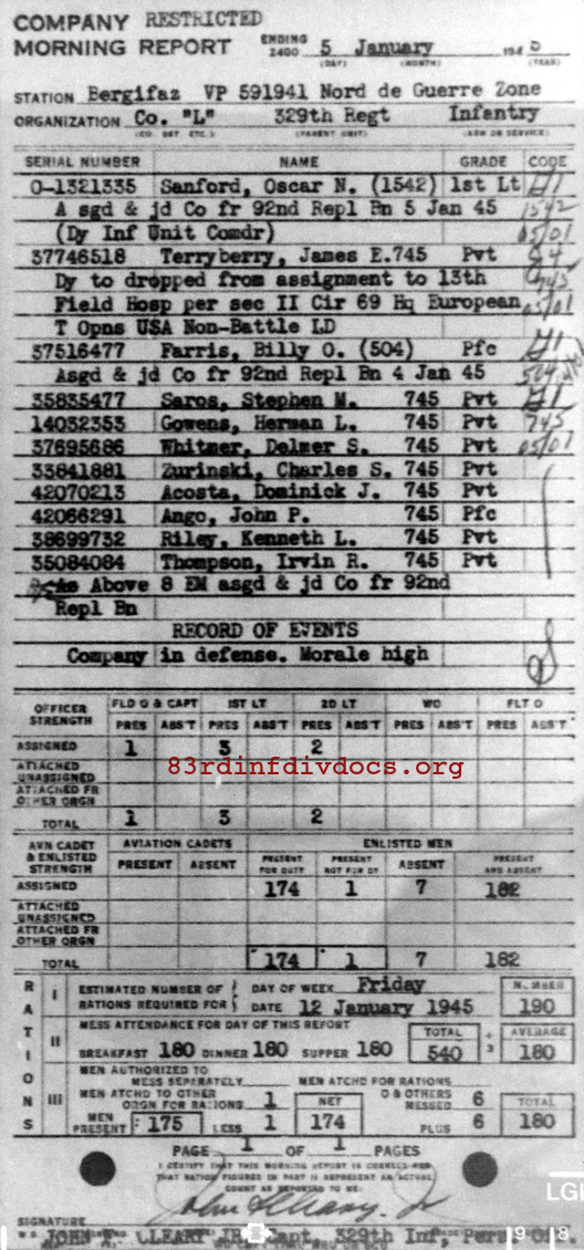 Morning report L/329 for January 5, 1945