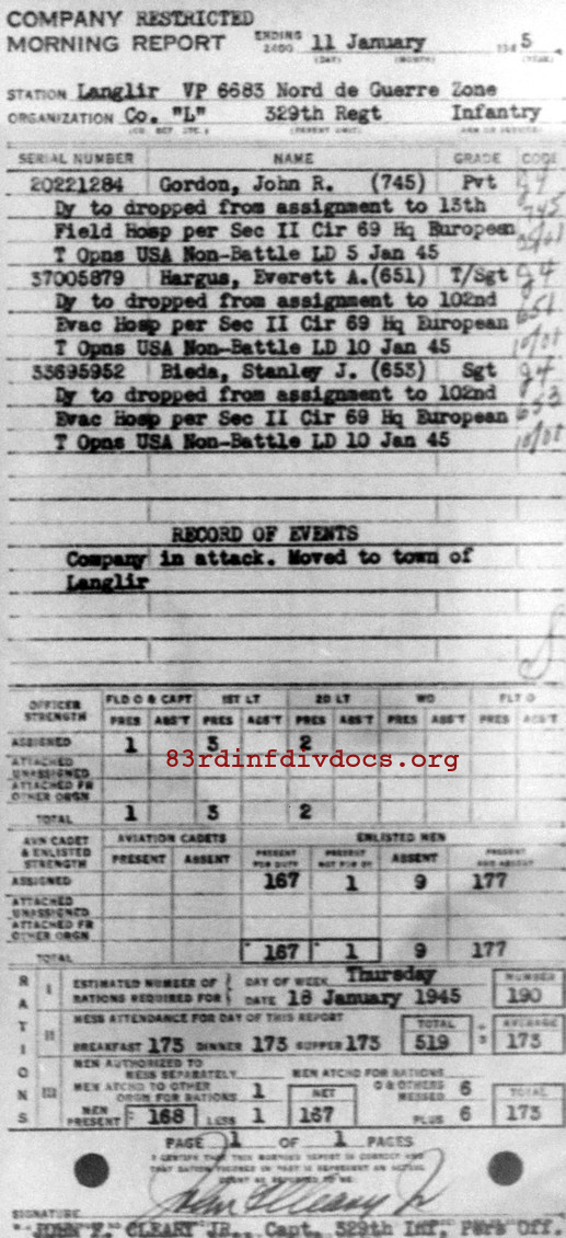 Morning report L/329 for January 11, 1945