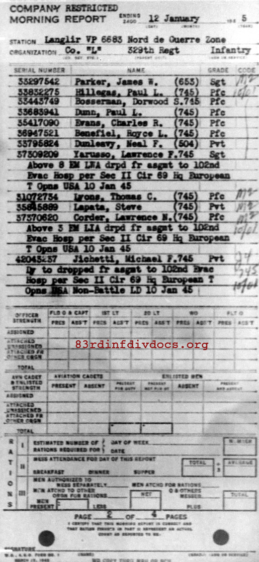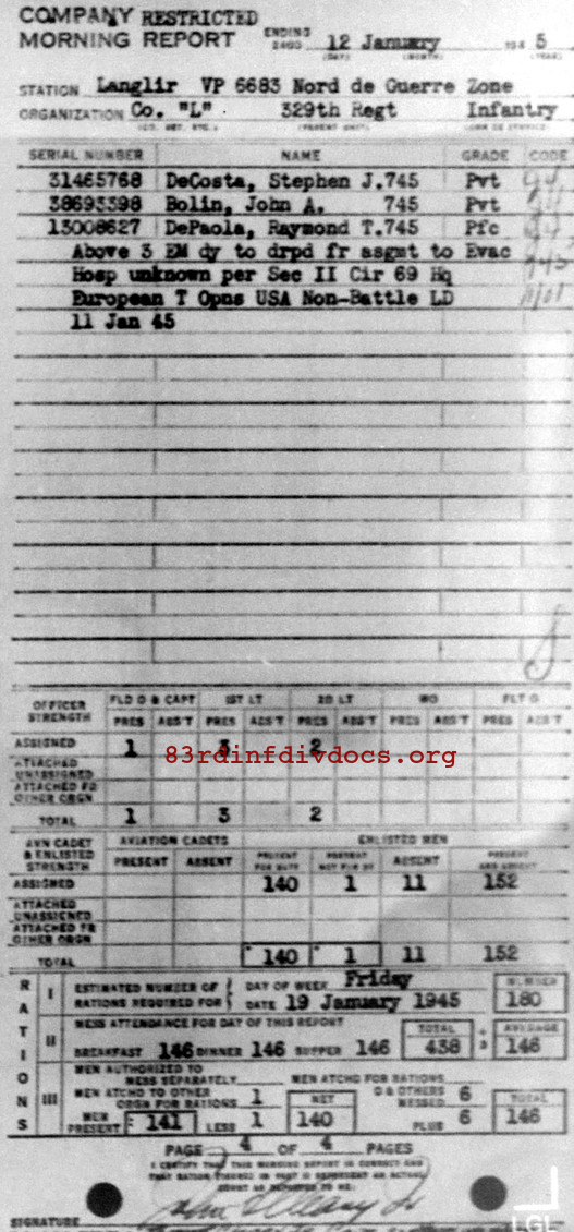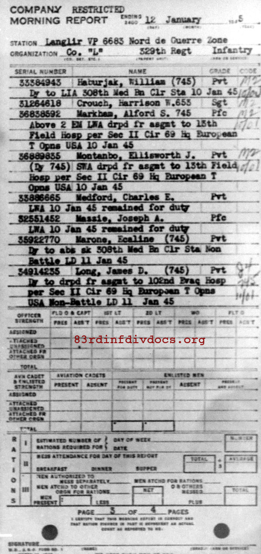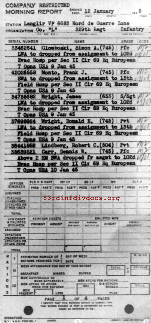 Morning report L/329 for January 12, 1945