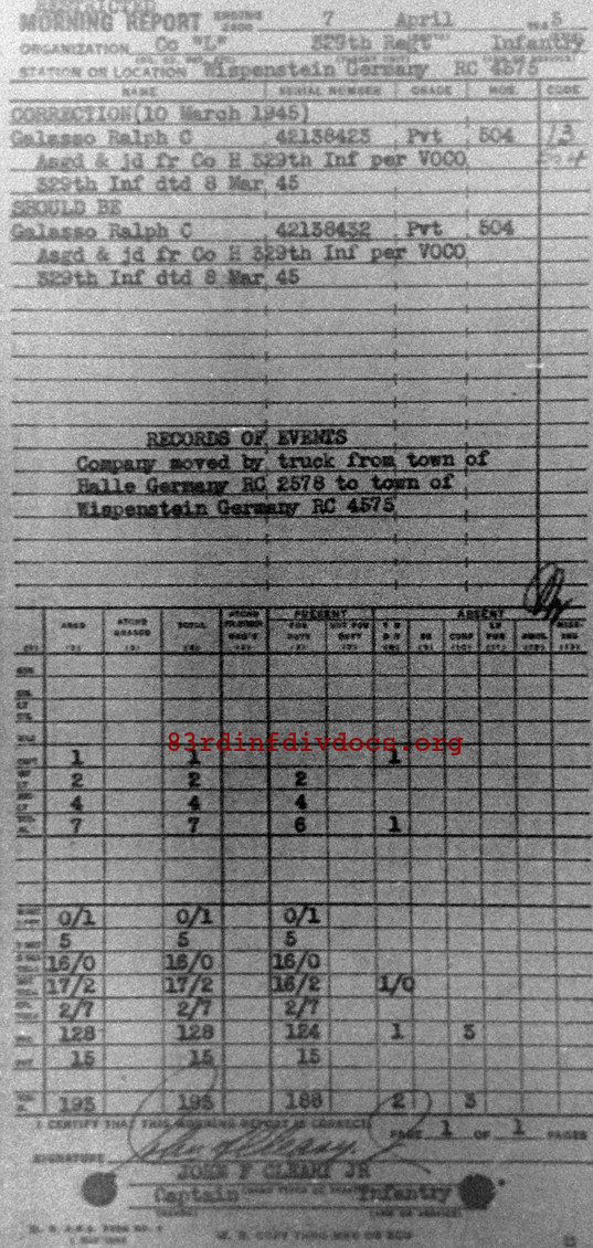Morning report L/329 for April 7, 1945
