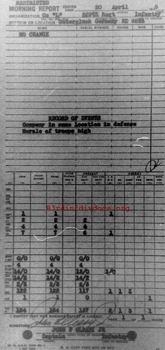 Morning report L/329 for April 20, 1945